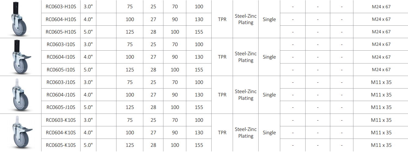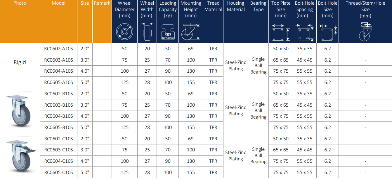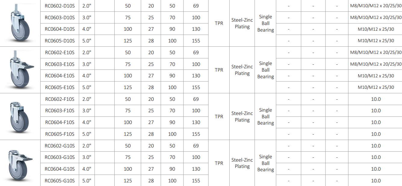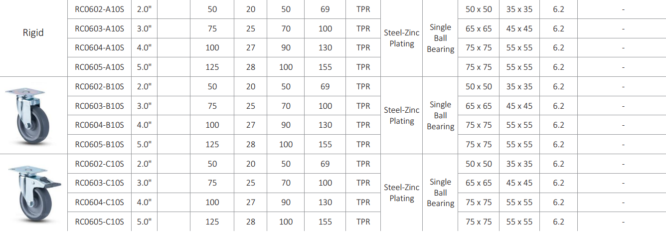 Light duty trolley castors