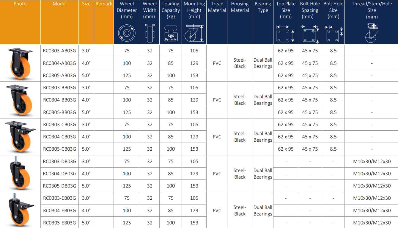 • SERIES RC03 - capacity up to 130kg