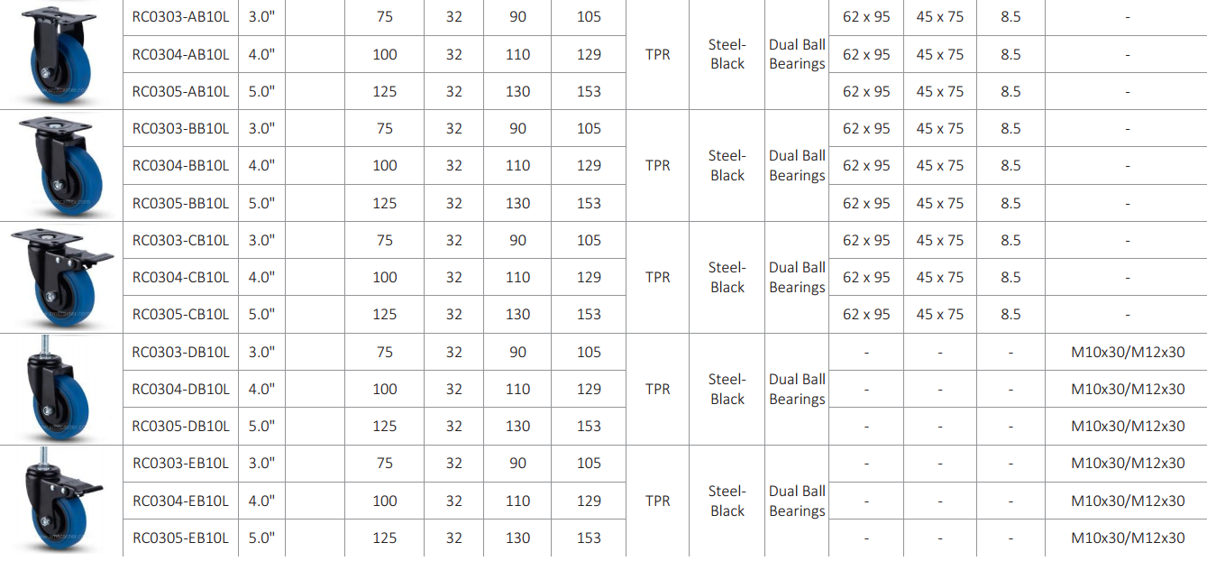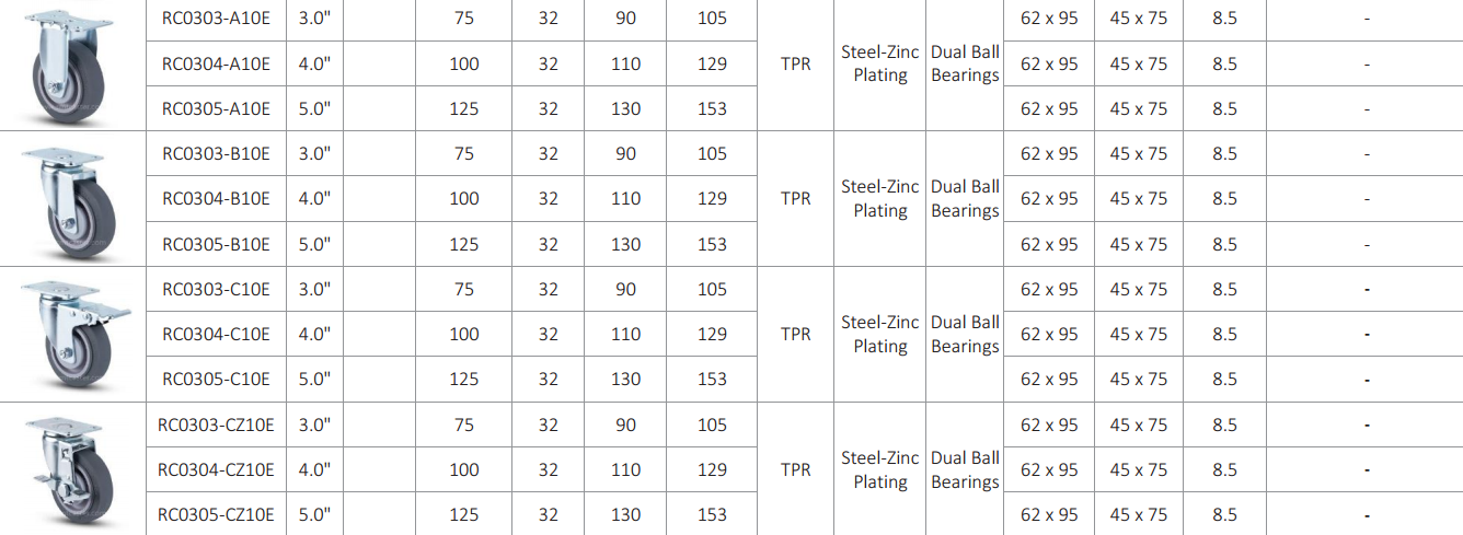 Medium duty castors